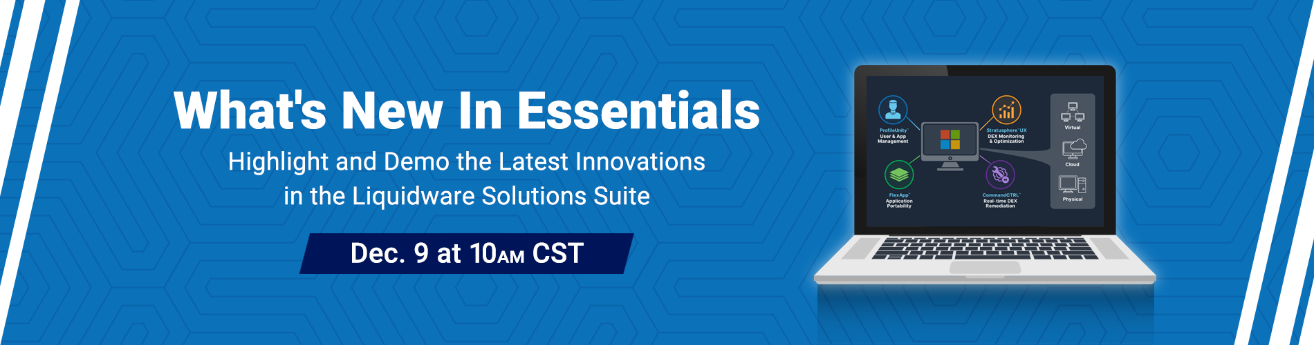 Join our digital employee experience experts for our "What's New" webinar. Jason E. Smith, VP Alliances and Product Marketing, James O'Regan, Product Marketing Manager, and Chris Walker, Senior Solutions Architect will highlight and demo the latest innovations in the Liquidware solutions suite. These include the latest enhancements to FlexApp application portability, Stratusphere UX user experience monitoring, diagnostics and visibility and ProfileUnity user experience management.